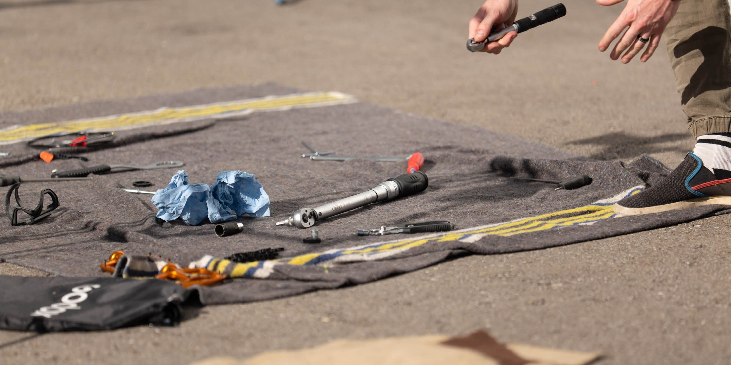 - Platziere dein Bike sicher auf einem Montageständer und sorge für ausreichend Platz zum Arbeiten.